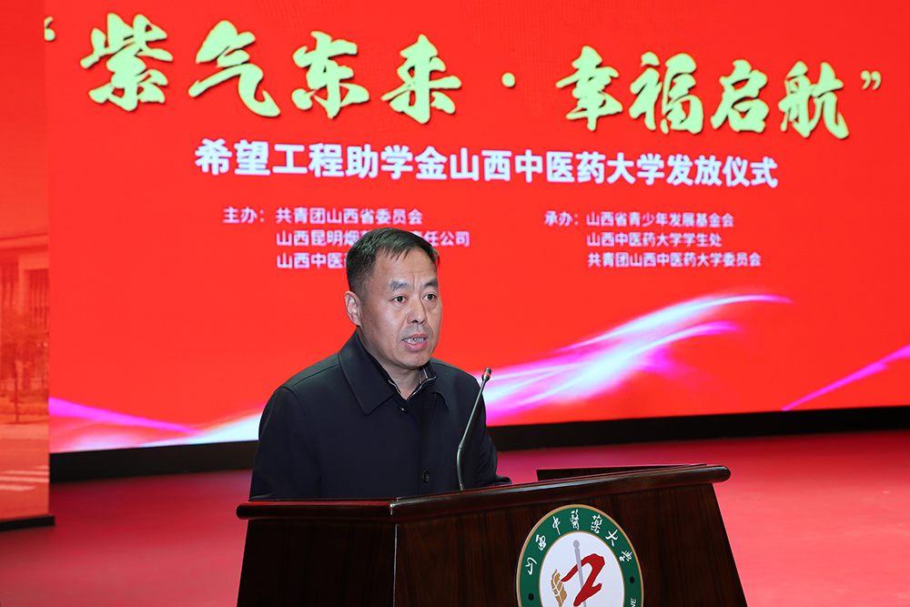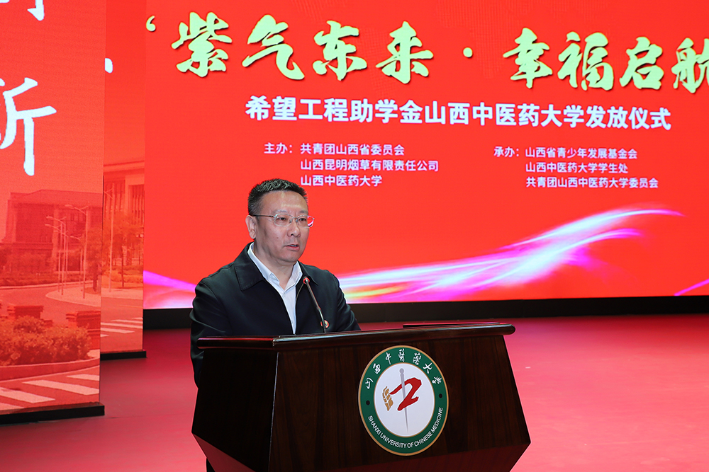 山西昆明烟草有限责任公司党委书记刘根栓和山西省青少年发展基金会秘书长张华发表讲话。表达了对山西中医药大学事业发展的关心关注,对中医药事业振兴发展的支持,勉励受助学生要发奋图强、回报社会。