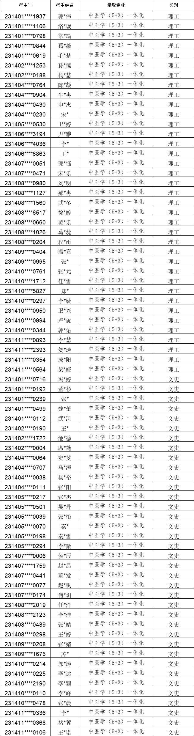 我校2023年本科一批次A类招生录取工作顺利结束,名单如下: