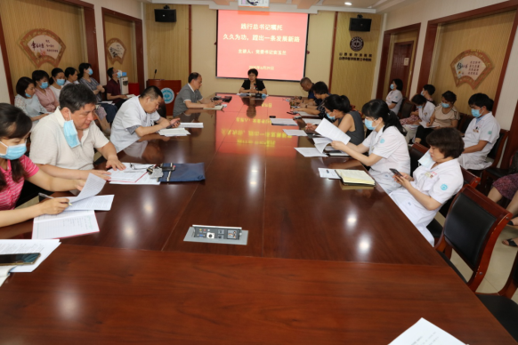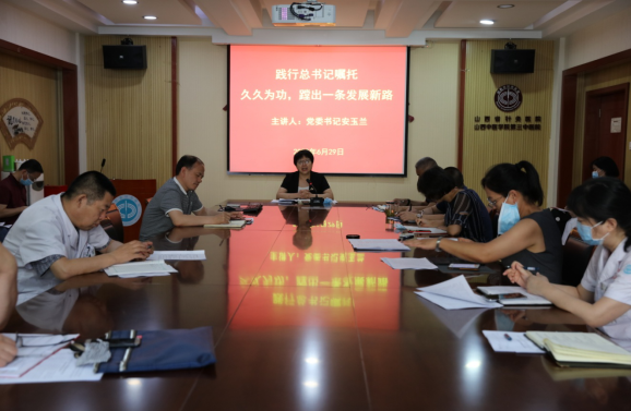 根据卫健委、学校党委的部署要求,围绕院党委《纪念中国共产党成立99周年活动方案》,继端午节之前为全体支部书记、委员讲专题党课后,6月29日下午党委书记安玉兰以“牢记总书记嘱托,夯实内涵,久久为功,蹚出一条发展新路”为题再次给全院中层干部上了一堂精彩的党课。