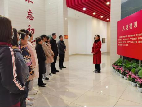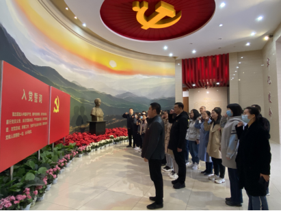 在鲜红的党旗下,在高君宇铜像前,全体党员庄严肃立,重温入党誓词,慷慨激昂,信念坚定,再次接受心灵的洗礼。