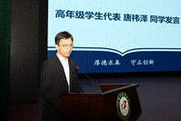 高年级学生代表23级学硕班唐祎泽同学上台发言,他提到,作为一名医学生,应认识到所学专业的价值,并提出了三点建议:深入理解专业内涵;树立正确的人生观、择业观、就业观;培养独立性,不断提升自身能力。九层之台,起于累土;千里之行,始于足下。唯有脚踏实地,刻苦钻研,才能勇攀高峰,到达梦想的目的地。