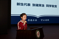 24级针推一班张储茉含同学上台代表新生发言,青春洋溢的面貌上尽显对大学生活的期待,与此同时,她还呼吁同学们应在大学中努力提高专业素养,积极参加社团活动,用勤奋的雨水浇灌梦想的秧苗,以梦为马,不负韶华。