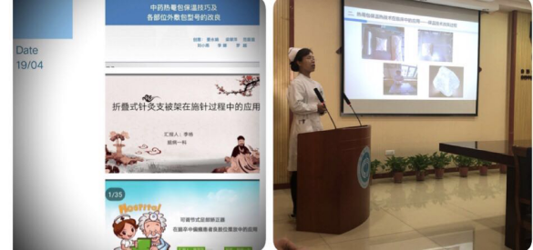 评委们从选题的科学性、内容创新性、PPT制作效果和汇报的完整性等方面进行评分。经过激烈的角逐,针灸五科武玉芬创新的"时速尺"摘取第一名桂冠,荣获一等奖;针灸一科付艳红创新的"改良版病号服"和脑病一科李扬的创新“折叠式针灸支被架”荣获二等奖;脑病一科南莎莎创新的“可调式足部矫正器”、脑病二科要永娟创新的“中药热奄包的保温技巧”和脑病二科刘菁创新的“导尿管的固定技巧”荣获三等奖。
