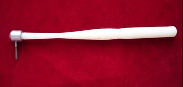 (1)梅花针属于浅刺针具,称为皮肤针。分针体、针座、针柄三部分,针体为七枚不锈钢针嵌于针座内,针尖由传统的尖锐改为钝尖,避免了叩刺时皮肤产生刺痛。针座由金属制成,镶嵌固定针体,由螺丝扣与针柄相连,便于更换。针柄为尼龙制成,具有良好弹性。有两节组成,便于拆装。
