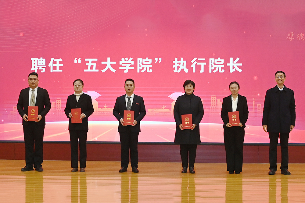 校领导为“五大学院”名誉院长、执行院长、学术委员会颁发了聘书。