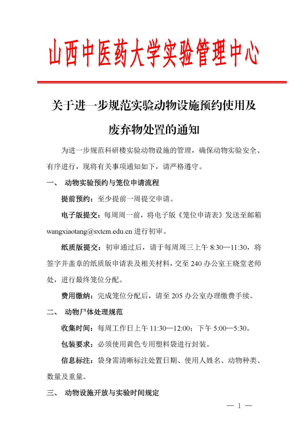 关于进一步规范实验动物设施预约使用及废弃物处置的通知