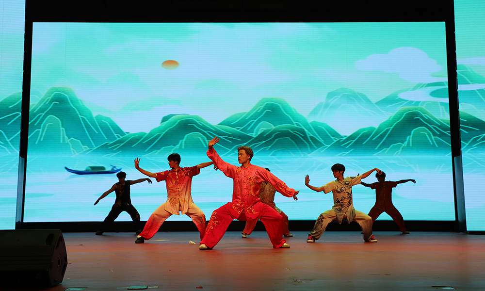 公开课在《数字经济点亮山西》的激昂旋律中拉开帷幕,通过回顾山西数字化转型的奋进历程,感受数字时代浪潮的强劲脉动;《撸起袖子加油干》则以铿锵的节奏、昂扬的舞姿迅速点燃全场热情;从扶贫干部扎根山乡、无私奉献的《以你为镜》,到悠扬的情景歌舞《追光》体现青年一代追随光明、勇担使命的坚定信念。《我的支教我的国》以细腻真实的表演,将脱贫攻坚一线青年学子的奉献故事娓娓道来,深深打动在场师生;铿锵鼓点响起,《上春山》的舞狮表演与中药炮制技艺展示同台呈现——鼓槌起落间,彰显着中医药“治未病”的积极理念;《真理之光》以“追求真理、坚守信仰”为主线,通过三代人的隔空对话,将抽象的真理理论转化为可感可知的生动画面;《中国新坐标》阐释发展蓝图,引导青年与国家同奋进;情景歌舞《领航》以激昂旋律、深情演绎,诠释“江山就是人民、人民就是江山”的深刻内涵,彰显使命担当,将演出推向高潮。