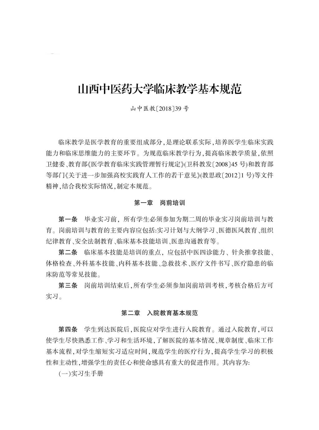 山西中医药大学临床教学基本规范
