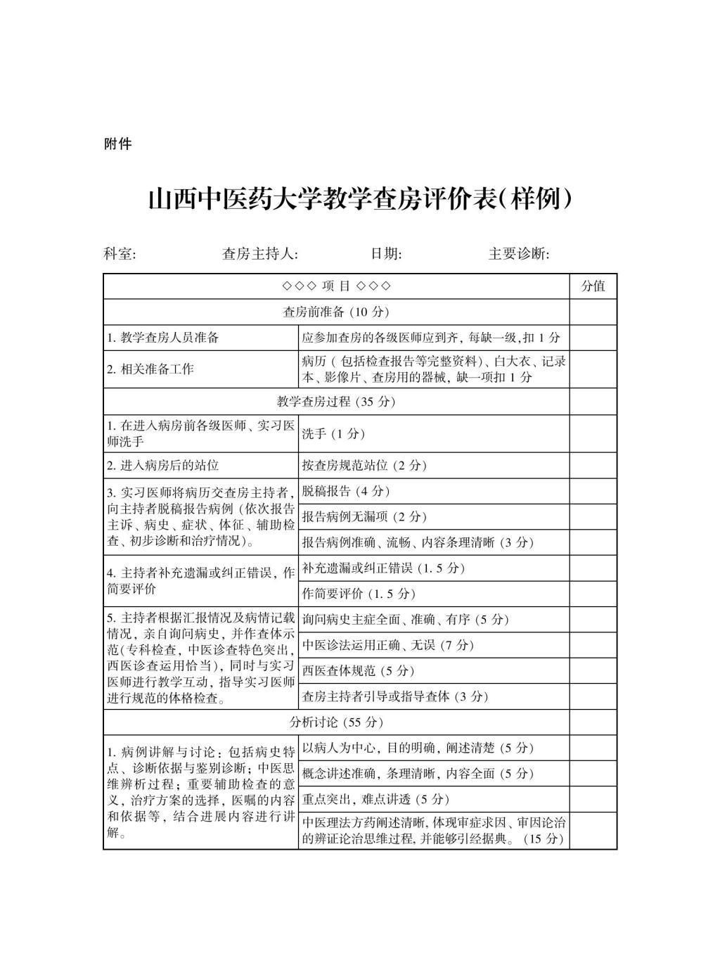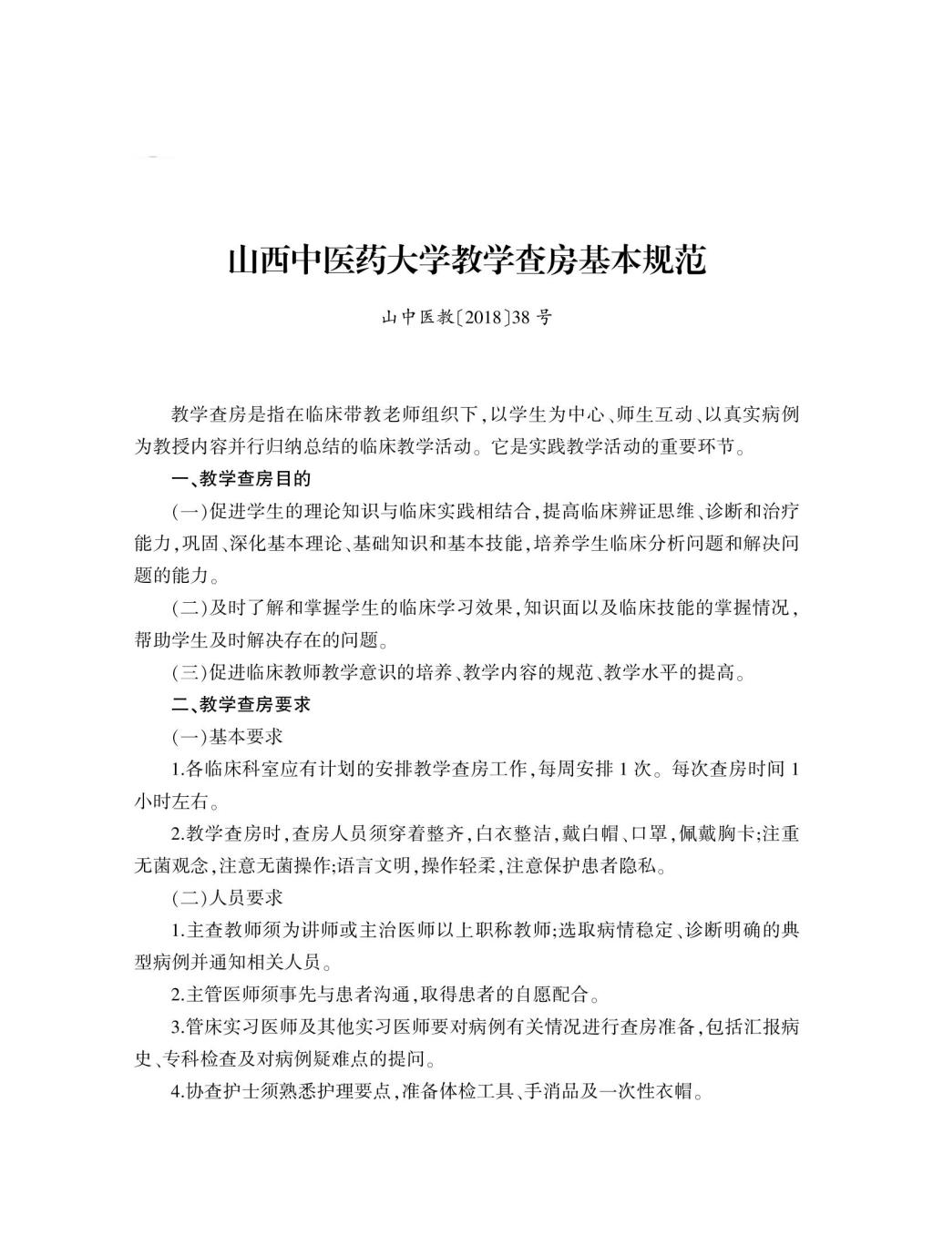山西中医药大学教学查房基本规范