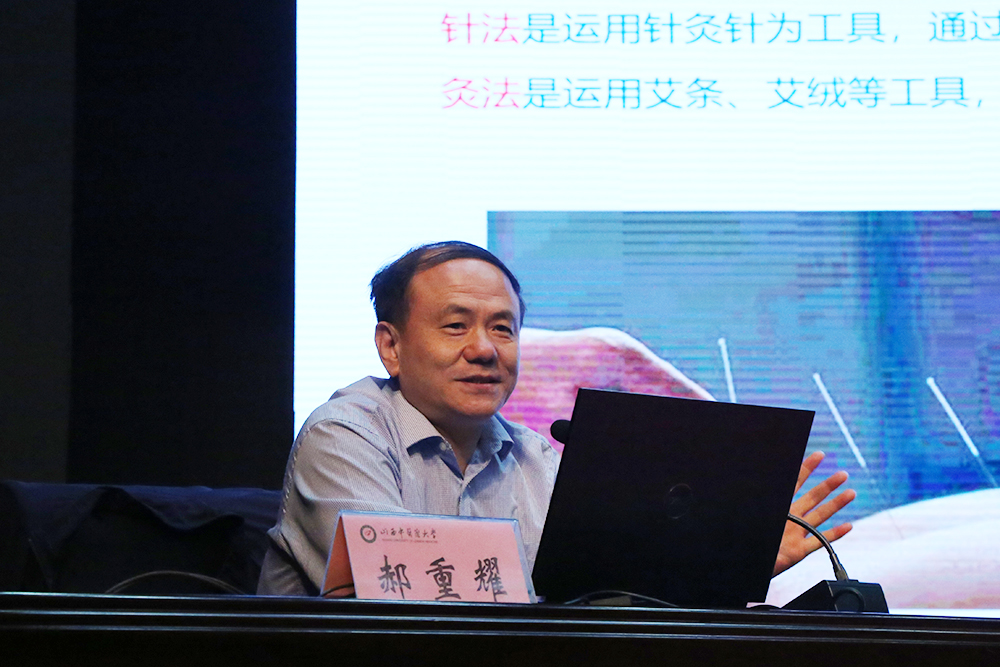 郝重耀向同学们详细介绍了针灸的起源、传承、发展和创新,让同学们在丰富的事例中深刻领略到针灸的神奇魅力。他以“针灸是古老的”“针灸是现代的”“针灸是世界”,向同学们生动展示了针灸学传承精华、守正创新的悠久发展历程,以及针灸学已经成为中国文化走向世界的“名片”与“使者”的广阔前景。