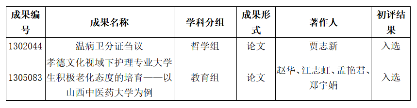 山西中医药大学山西省第十三次社会科学研究优秀成果初评结果公示