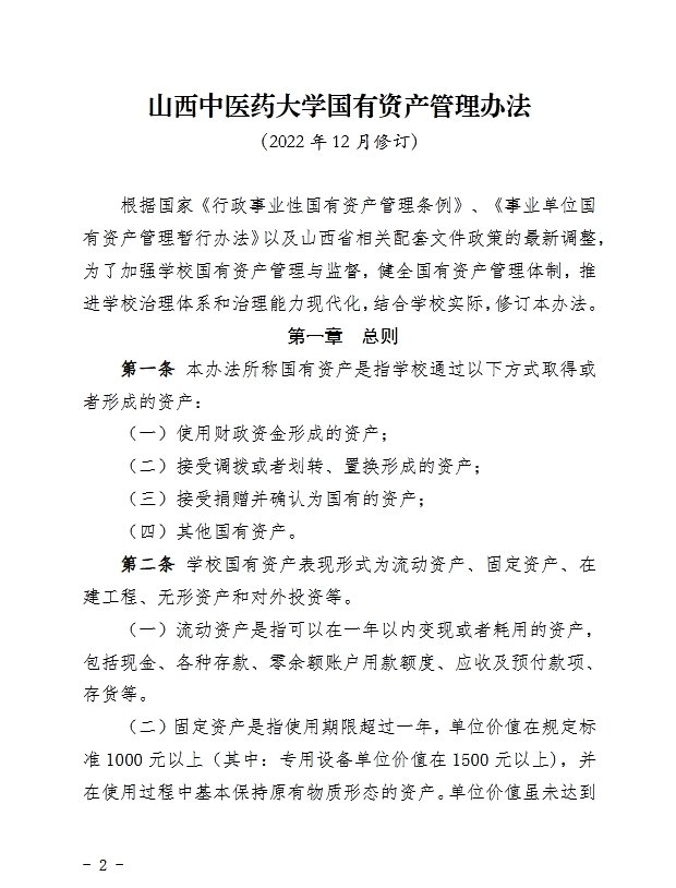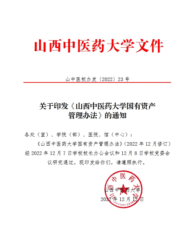 [山中医校办发〔2022〕23号]关于印发《山西中医药大学国有资产管理办法》的通知