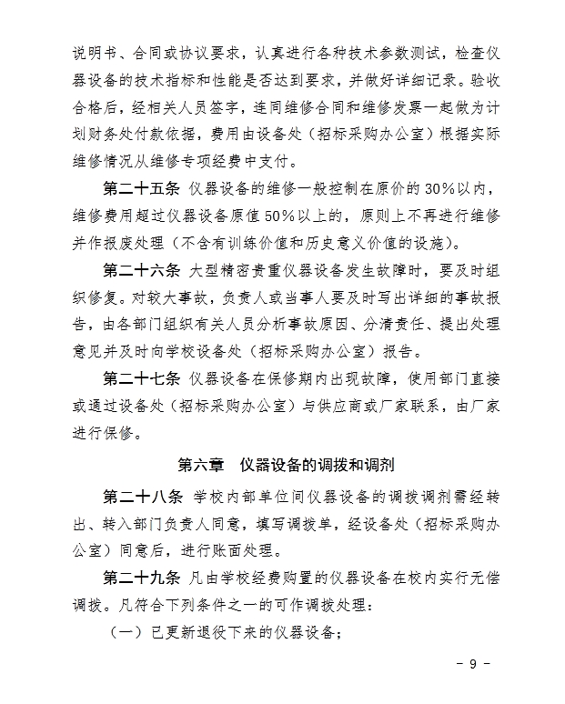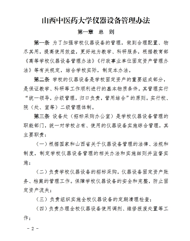 山西中医药大学仪器设备管理办法