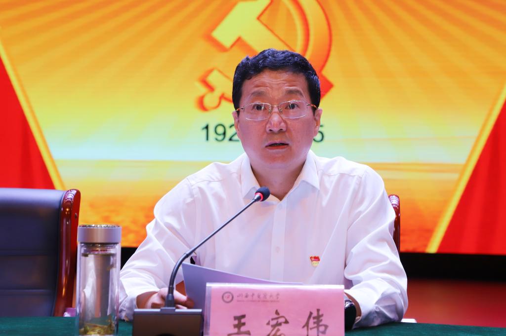 王宏伟在主持讲话中强调,全校各级党组织和全体师生要贯彻落实好会议精神,进一步赓续血脉筑牢信仰之基,转化动能聚力中心任务,乘势而上擘画发展新篇,聚焦学校中心任务,把表彰激发的精气神,精准投入到博士单位建设、审核评估等任务的主战场上去,实现“辐射效应”最大化,推动学校各项事业高质量发展。