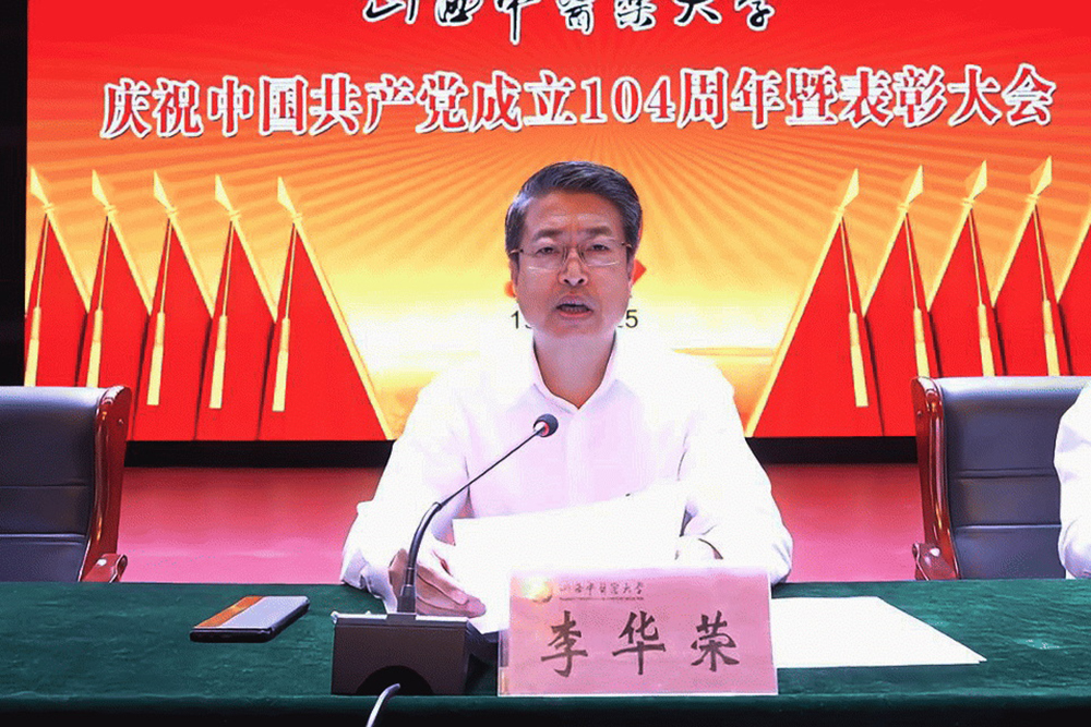 李华荣代表学校党委向为党的教育事业、中医药事业辛勤工作、无私奉献的老同志表示崇高的敬意,向受到表彰的先进集体和优秀个人表示热烈的祝贺,向在教育教学、科研、临床、管理、服务等各条战线上的全体党员致以节日最美好的问候,向为学校改革发展辛勤耕耘的全体师生医护员工致以衷心的感谢和崇高的敬意。他回望了中国共产党成立以来104年的历史,特别是党的十八大以来,共产党人始终坚守初心,矢志不渝,赓续红色血脉,实现第一个百年奋斗目标,明确实现第二个百年奋斗目标的战略。他回顾了我校建校36年来的发展成绩,并对全校各级党组织和全体党员提出四点要求。一要坚持政治引领,把稳思想之舵,始终把政治建设摆在首位。要深入学习贯彻习近平新时代中国特色社会主义思想,牢记共产党人的初心使命,用党的创新理论统一思想、意志、行动,确保党中央重大决策部署和上级党组织工作要求在学校落地生根。二要坚持对标“铁规矩”,锻造“硬作风”,持续深入贯彻中央八项规定精神学习教育。通过开展深入贯彻中央八项规定精神学习教育,引导广大党员干部牢固树立正确的权力观、政绩观、事业观,切实把学习成效转化为谋划发展的思路、破解难题的举措和推动工作的本领。三要认清大局大势,凝聚全校共识,科学谋划未来发展。始终牢记立德树人根本任务,高质量总结“十四五”、高水平谋划“十五五”,全局性谋划破解山中医发展不平衡、不充分的问题。积极推进应用型转型,实现差异化发展,绘制好山中医未来五年高质量发展的“施工图”和“路线图”。四要坚持党旗领航,发挥政治和组织优势,引领高质量发展。通过思想、组织、作风引领筑牢思想根基,强化理论学习营造风清气正的政治生态为学校事业健康发展最坚实的重要保障。