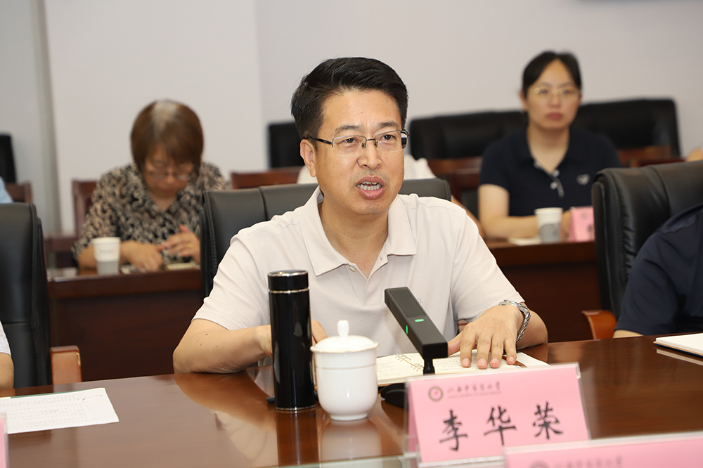 谢明勇院士感谢学校的热诚欢迎。他表示,通过这次访问对山西中医药大学乃至山西省中医药发展史有了更加深入的了解。他对学校近年来的快速发展和在科技创新、人才培养、社会服务等方面取得的成绩表示赞赏,对学校布局功能食品和“健康产业学院”建设表示肯定,并根据自己深耕功能食品科研领域的丰富经验,提出了宝贵指导和建议。