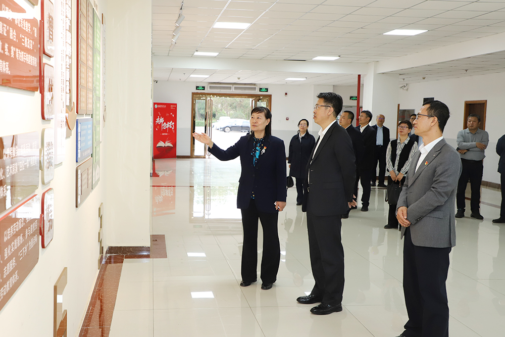 李华荣一行实地考察了山西药科职业学院中药材产教融合实训基地、中药调剂技艺传承基地、中药标本馆、百草大药房、药茶技能技艺传承与创新实训基地、大学生素质教育中心等教学实训场所,详细了解了学院在产教融合、技能传承、党建育人等方面的建设成效。