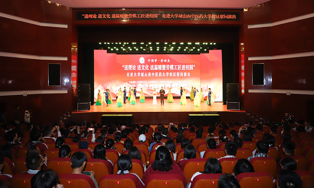 9月28日晚,山西省总工会、省妇联、团省委、省教育厅共同主办的“中国梦·劳动美——送理论 送文化 送温暖暨劳模工匠进校园”活动在我校大学生活动中心举行。省总工会党组成员、副主席李忠贵,校党委副书记、校长王宏伟出席并讲话。团省委副书记陈锴、校党委副书记苑静出席。来自大学城10所高校的1000余名师生共同参与了这场精彩纷呈的文化盛宴。