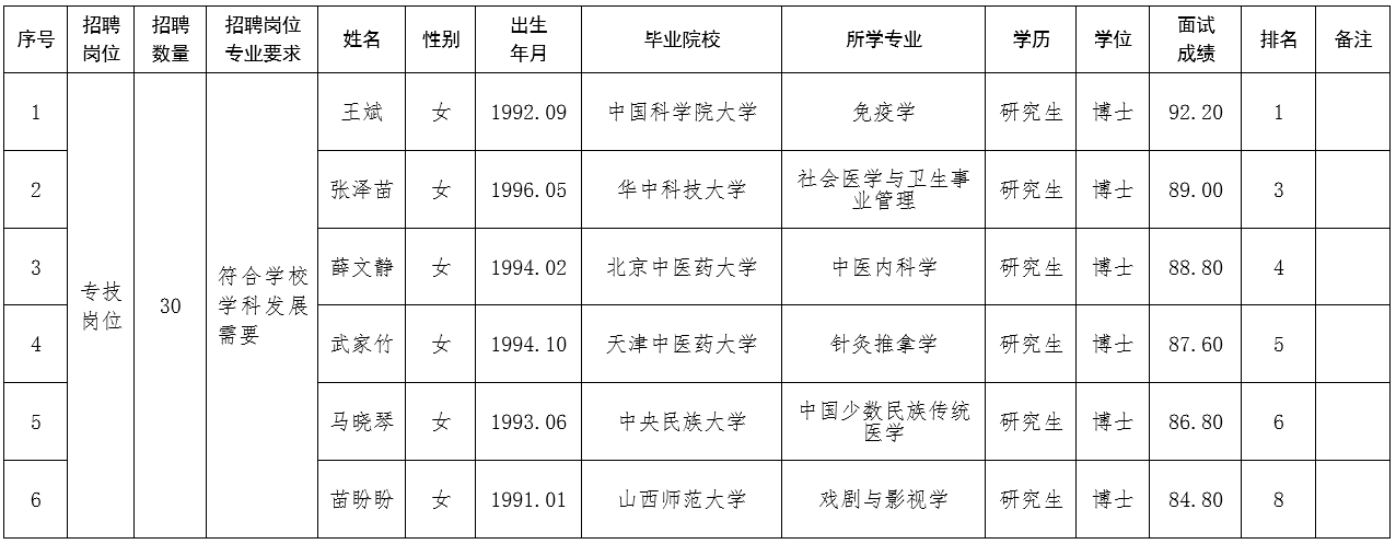 附件:山西中医药大学公开招聘博士研究生拟聘用人员名单