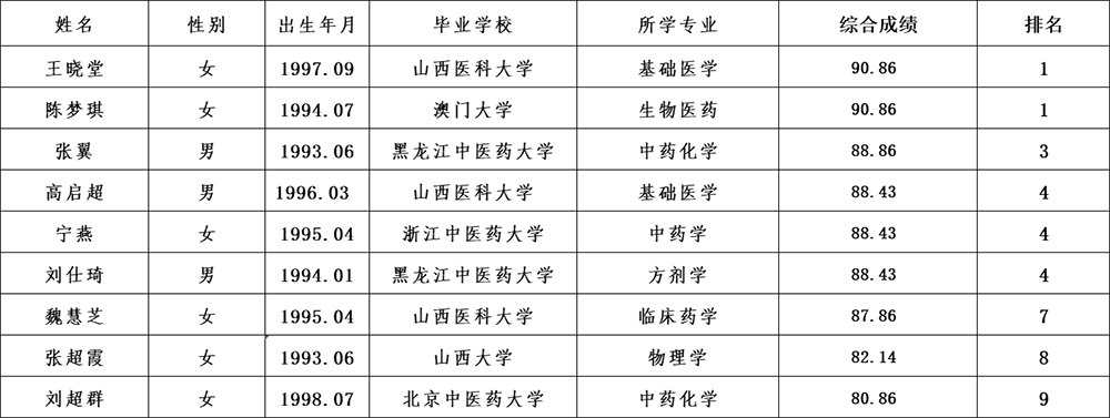 根据《山西中医药大学2025年公开招聘博士研究生实施方案》,学校组织开展了博士研究生招聘面试工作。现将面试成绩予以公告。