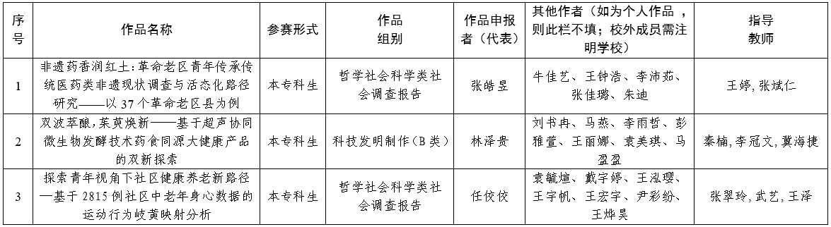 根据第十九届“挑战杯”山西省大学生课外学术科技作品竞赛拟报国赛作品工作安排,综合省赛评审委员会评定结果,拟推荐以下项目参加国赛评审,信息如下: