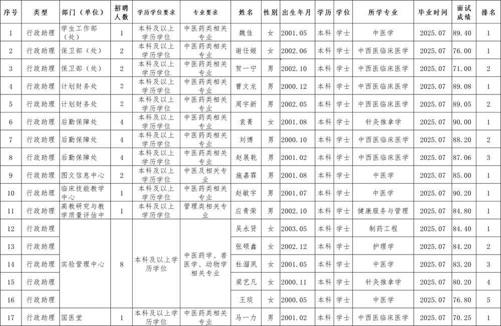 2.山西中医药大学2025年公开招聘行政助理(第一批)拟聘用人员名单