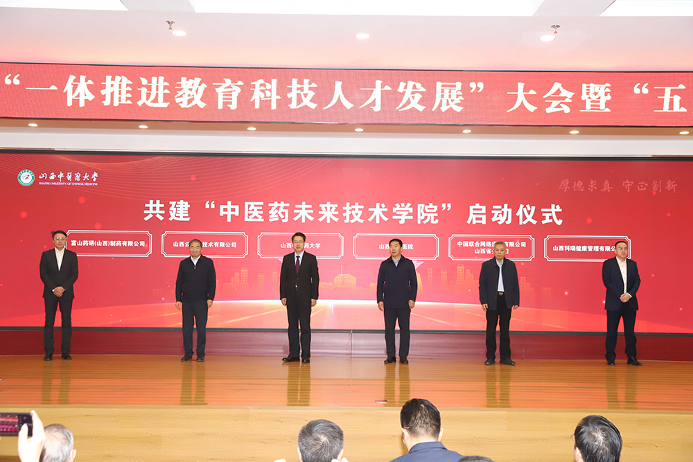 11月30日上午,山西中医药大学“一体推进教育科技人才发展”大会暨“五大学院”揭牌仪式举行。傅山学院、乡村振兴医师学院、健康产业学院、老年健康学院、中医药未来技术学院5块崭新牌匾同步揭幕。这一改革实践正式落地,是山西中医药大学深入推进新一轮学科专业调整、创新育人模式迈出的关键一步。