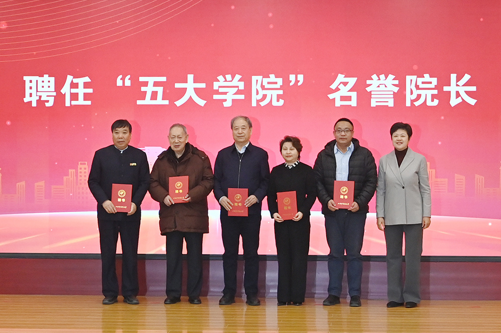 校领导为“五大学院”名誉院长、执行院长、学术委员会颁发了聘书。