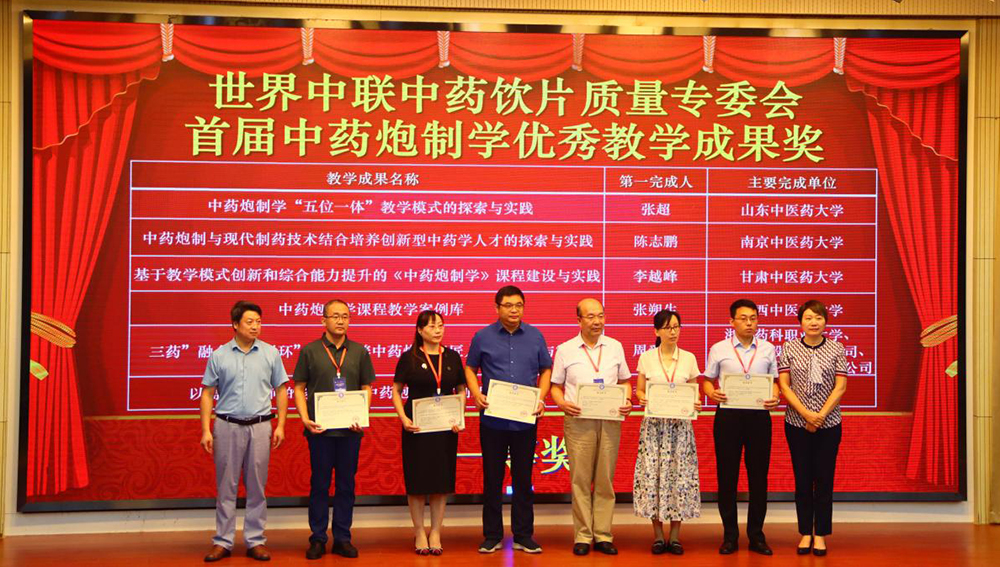为鼓励广大中药炮制学科领域教育科技工作者积极开展教育教学研究与改革,总结推广教学实践中的先进经验,不断提高中药炮制学教学水平和教育质量,推动饮片行业科技创新,发现培养青年科技人才,世界中医药学会联合会中药饮片质量专业委员会举办了首届中药炮制学优秀教学成果评选与第二届中药炮制学研究生优秀论文大赛,大赛颁奖仪式于8月18日举行。张朔生教授带领中药炮制学科团队完成的《中药炮制学课程教学案例库》获优秀教学成果一等奖,中药与食品工程学院2020级研究生刘晓琴的论文《基于多元统计分析的干姜及其炮制品炮制过程质量标志物变化分析》获研究生优秀论文一等奖、中药与食品工程学院2022级研究生李子昂的论文《Does the separate listing of Lonicerae Japonicae Flos and Lonicerae Flos in the Chinese Pharmacopoeia improve drug safety?》获研究生优秀论文三等奖。
