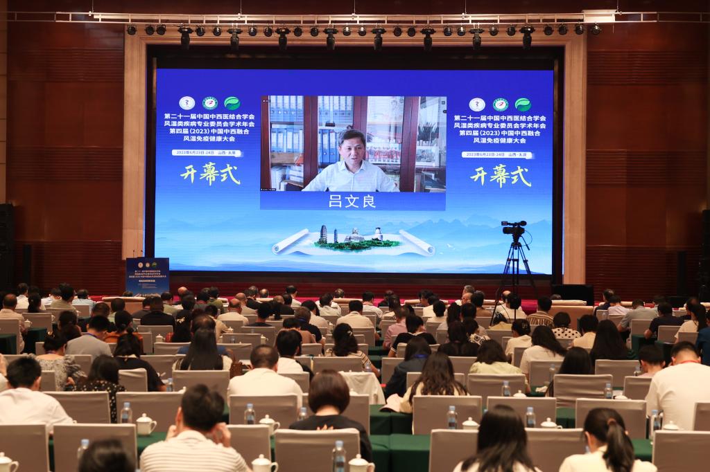 中国中西医结合学会副会长吕文良、山西省教育厅副厅长王东、山西省卫健委副主任阴彦祥、校党委书记郝慧琴、中国中药协会风湿免疫病药物研究专业委员会主委曾小峰、中国中西医结合学会风湿类疾病专业委员会主委刘维出席开幕式并讲话。