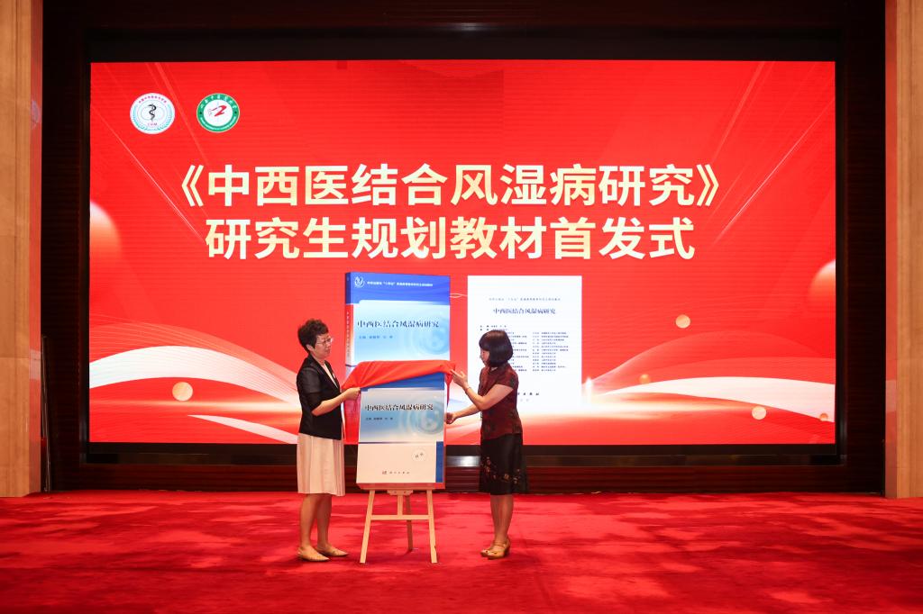 开幕式后举行了《中西医结合风湿病研究》研究生规划教材首发仪式。本教材以促进中西医结合学科发展和坚持中西医并重为编写原则,重点阐述风湿病中西医结合防治研究领域的最新研究成果及诊疗进展,突出中西医结合的优势、特色及中西医结合诊疗策略。主编郝慧琴教授和刘维教授共同为《中西医结合风湿病研究》研究生规划教材进行了揭幕。