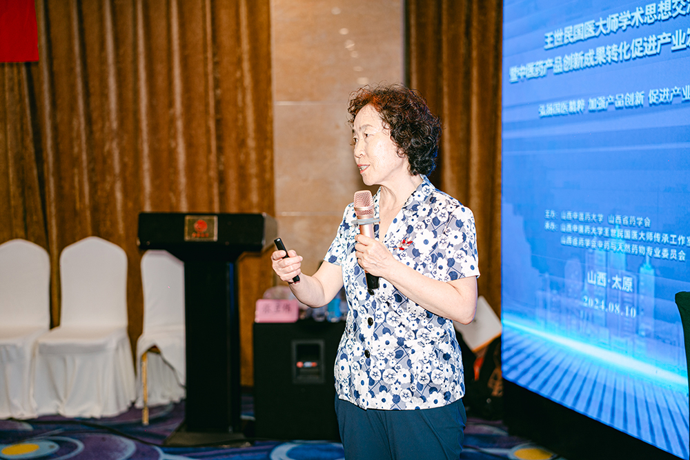 山西中医药大学中药与食品工程学院原院长、国务院特殊津贴专家、博士研究生导师裴妙荣教授作了题为《传承王世民国医大师学术思想 开发创新产品 助力产业发展》的报告。