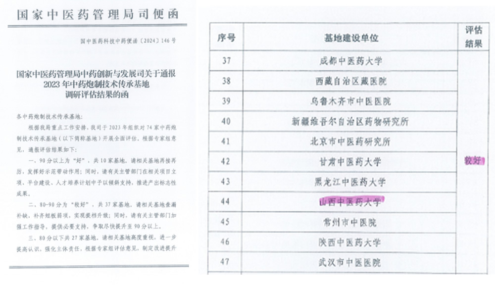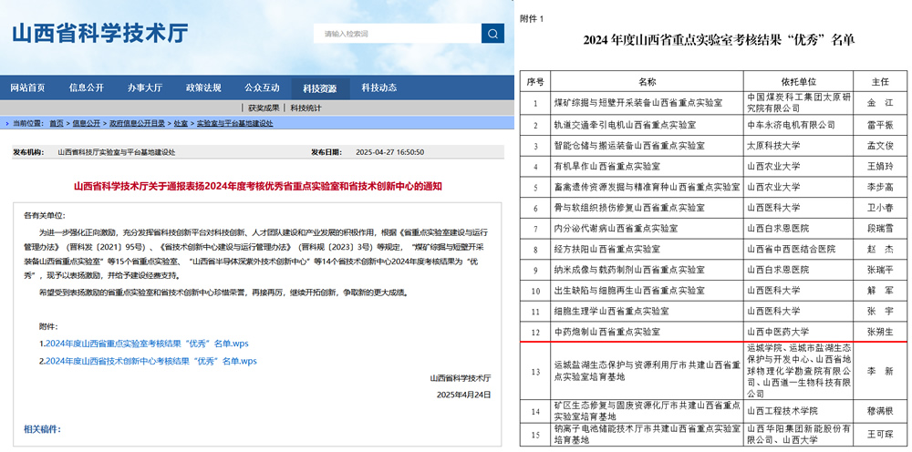 我校中药炮制山西省重点实验室连续两年荣获山西省重点实验室绩效考核“优秀”