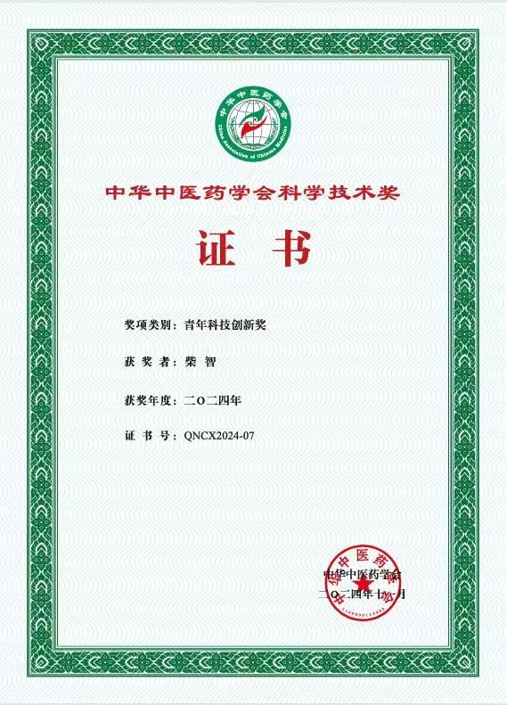 我校青年岐黄学者柴智荣获2024年度中华中医药学会“青年科技创新奖”
