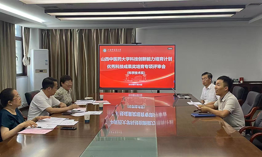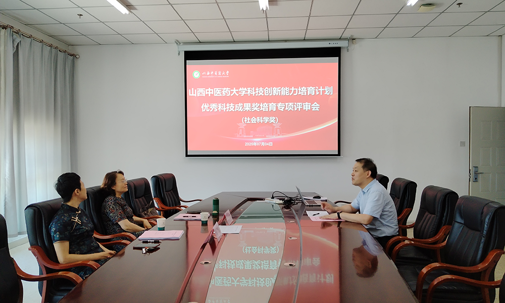 7月4日,我校召开2025年度申报山西中医药大学科技创新能力培育计划——优秀科技成果奖培育专项评审会。会议邀请山西医科大学杨利军教授、山西省中医药研究院倪艳主任药师、山西财经大学孙淑云教授、山西医科大学邓蕊教授及我校田岳凤教授担任评审专家。评审工作分科学技术奖和社会科学奖两组进行。各申报项目负责人及主要成员参加会议。