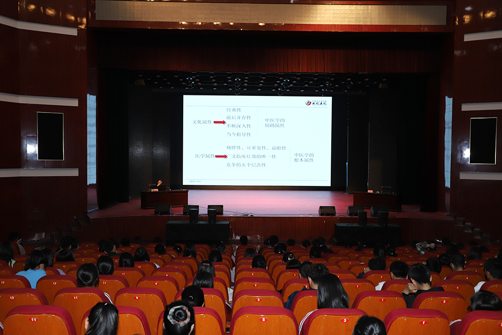 9月20日上午,山西中医药大学附属医院副院长王培利以“结缘中医,幸甚至哉!”为主题,在大学生活动中心面向2023级新生开展中医药自信专题讲座。