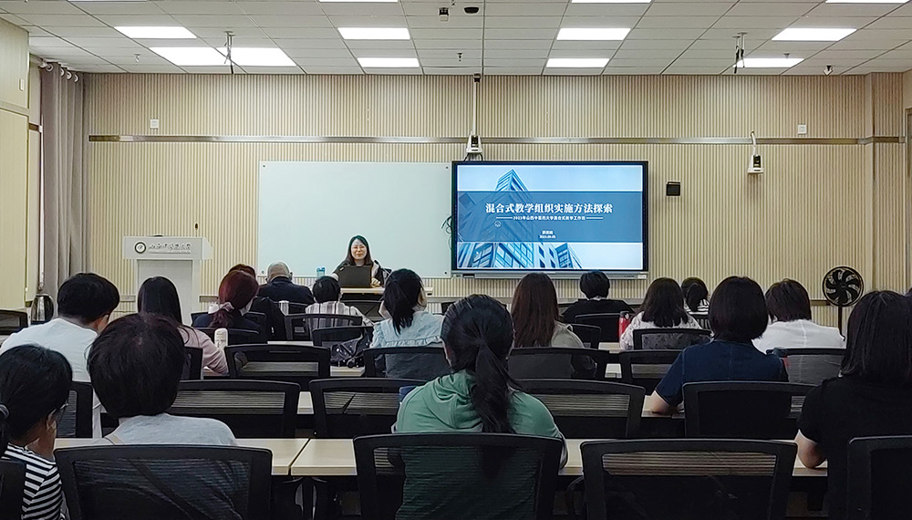 教学论坛环节,薄瑞峰教授、马春生教授、薛英娟副教授就混合式教学实施背景、课程建设的信息化技术运用、教学实施过程及效果评价、教学案例设计等方面进行了详细的阐述与分享。教学工作坊环节,我校部分课程负责人聚焦混合式教学的痛点和难点,对教学内容重构、教学方法融合、典型案例设计等内容进行了汇报,专家分别给予了针对性的指导与建议。参训教师在互动环节踊跃提问,针对教学过程中遇到的教学活动设计、评价方法选择等问题与专家进行了深入地交流和探讨。