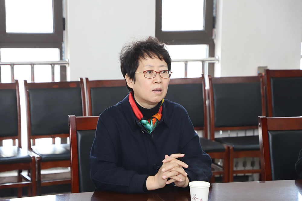 在教研室走访调研中,郝慧琴与老师们亲切互动,就教研室人员结构、课程建设、教研活动等内容进行深入交流,并提出针对性意见和建议。