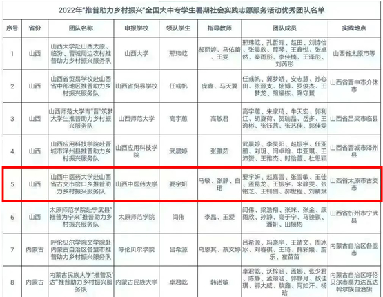 近日,教育部公布了2022年“推普助力乡村振兴”全国大中专学生暑期社会实践志愿服务活动优秀团队名单,我校“本草话真情”实践队位列其中。