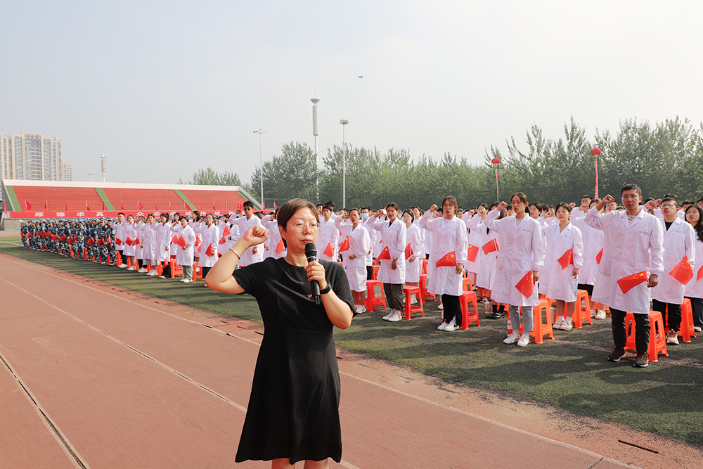 学工部部长赵瑞宝带领全体新生庄严宣誓《医学生誓言》。