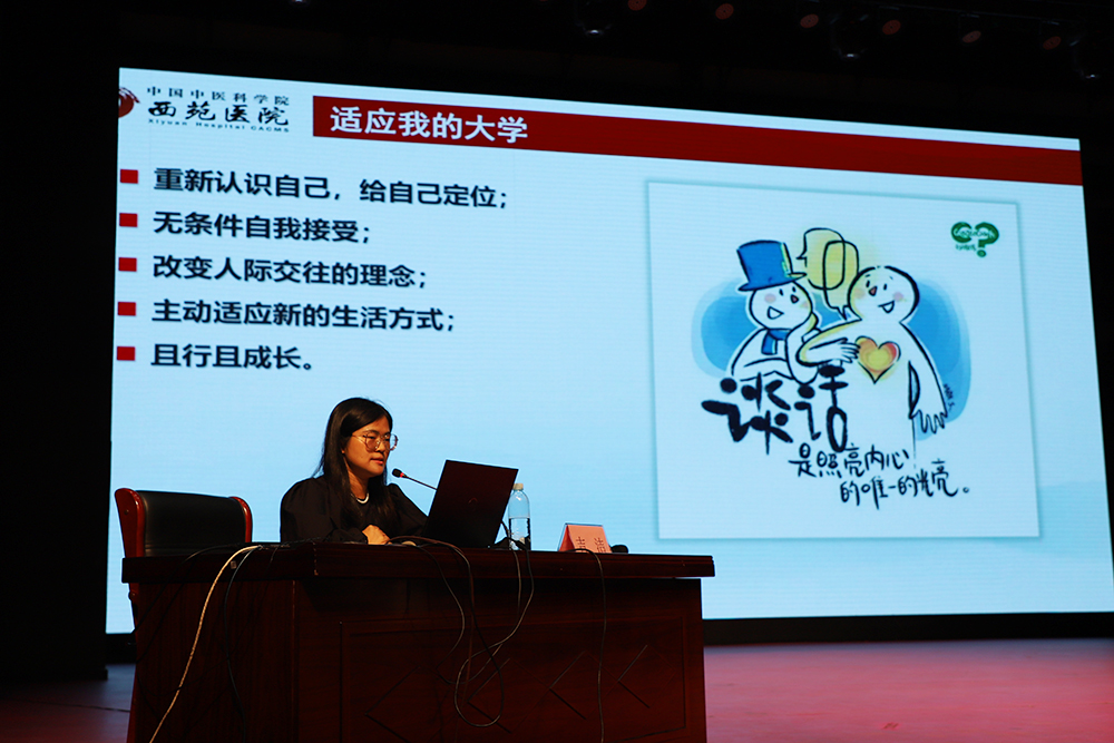 9月14日下午,中国中医科学院西苑医院山西医院吉洁博士为2024级新生举行了题为《梦想启程,医路成长》的报告会。