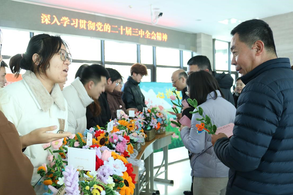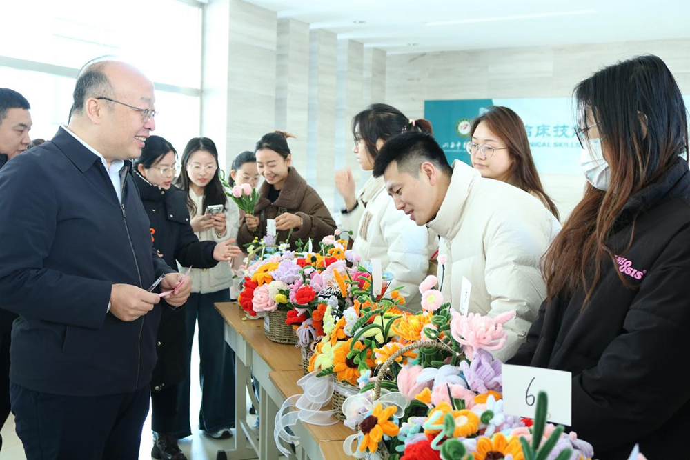 12月2日,护理学院举办“扭动心灵节奏,花绽心之舞台”扭扭棒DIY心理健康教育作品展示活动,此次心理健康教育活动历时半月,学院全体学生参与。校党委副书记苑静,校党委委员、纪委书记乔军红,副校长郭蕾到活动现场参加作品评选,并与同学们亲切交流。宣传统战部、学生工作部、学院教师代表、各学院学生会主席及学生代表参加作品评选。