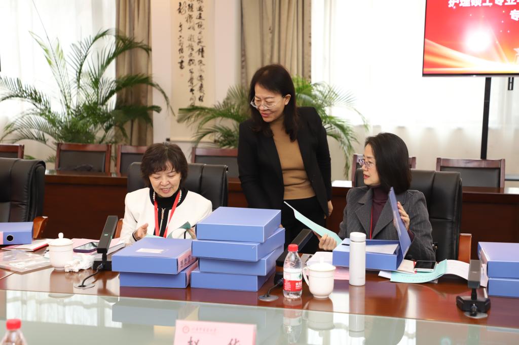 护理学院院长赵华从护理专业硕士学位授权点建设目标与标准、基本条件、人才培养、服务贡献及持续改进计划等方面向专家组做了详细汇报。