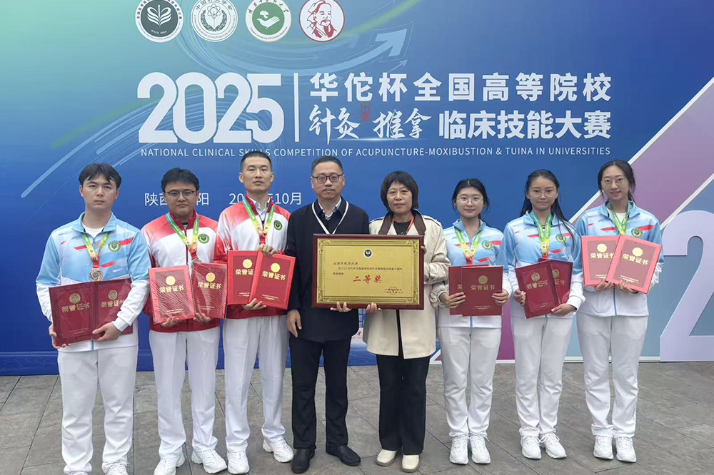 10月17日至19日,由中国针灸学会主办的2025“华佗杯”全国高等院校针灸推拿临床技能大赛在陕西中医药大学举办。我校代表队荣获大赛团体二等奖,参赛选手获单项一等奖1项、三等奖8项,充分展现了学校在针灸推拿学...
