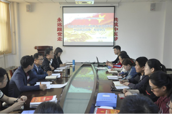 关伟在主持会议时指出我们要深刻领会、坚定贯彻习近平总书记的重要讲话精神,以“四个讲清楚”为着力点,用历史逻辑、实践逻辑、理论逻辑相结合的大视野,贯穿政治、思想、文化、社会史相结合的宽领域,充分认识研究五四运动其重要的历史意义,积极引导广大青年以史为鉴、以史为师,把握当下,新时代要有新作为。同时希望各党组织在今后学习工作中:一要加强理想信念教育,时刻用习近平新时代中国特色社会主义思想武装头脑,加强党史、国史、改革开放史、社会主义发展史教育,教育广大研究生学子信马列,听党话、跟党走。二要加强爱国主题教育,以“纪念五四运动100周年、献礼祖国70华诞”为主题,结合我们的专业特点,深入开展“礼敬中华优秀传统文化”系列活动,引领广大研究生胸怀爱国之情,树立文化自信。三要加强实践担当教育,以“中医药健康服务进社区、中医药文化进中小学”双进活动和党员先锋行特色实践活动为平台,深入革命老区、中小学等地开展国情教育、服务社会等主题实践活动,引导广大研究生在亲身参与中认识国情长才干,树立中医药文化自信,担当时代责任,为传承发展中医药事业做出贡献