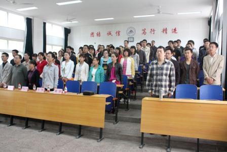 9月10日上午,我校 2011级硕士研究生开学典礼在研究生学术报告厅举行。校领导张俊龙、周晓明出席,相关部门领导和全体研究生教师参加。开学典礼由副校长冀来喜主持。常务副校长、党委副书记、博士生导师张俊龙教授发表重要讲话,对2011级硕士研究生寄予厚望,希望大家要确立正确的学习目标,设计好自己的学术规划、职业规划与人生规划,并培养优良的学术品格。他风趣地嘱托:大家在学习生活当中,备好“问题丹”,乐服“兴趣散”,常饮“信心汤”,愉快地度过美好的研究生生涯。教务处处长、硕士生导师田岳凤教授及在校学生代表、新生代表分别发言。