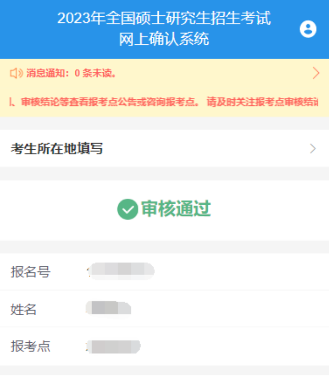 (一)审核通过:表示网上确认工作完成,考生登录系统后可看到如下页面。