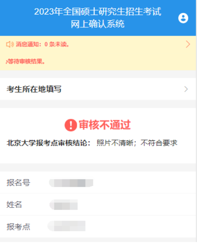 (三)审核不通过:因不符合报考条件或报考点接收条件导致最终审核不通过的考生,报名信息无效。考生登录系统后可看到如下页面: