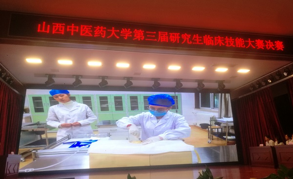 郝慧琴副校长在讲话中首先对大赛筹办过程中所有付出辛勤汗水的全体专家老师及研究生同学表示感谢。同时指出,研究生临床执业技能大赛是在学校“12310”战略发展思路的指引下,进一步落实研究生教育内涵发展、特色发展、创新发展的重要举措,自创办以来在营造浓厚的校园学术氛围,提升研究生临床技能和人才培养质量方面起到了积极的推进作用,已逐步形成学校校园文化建设中亮点和特色。希望大家再接再厉,创新思维,把每年一届的研究生临床技能大赛打造成我校研究生的学术盛宴和精品活动。