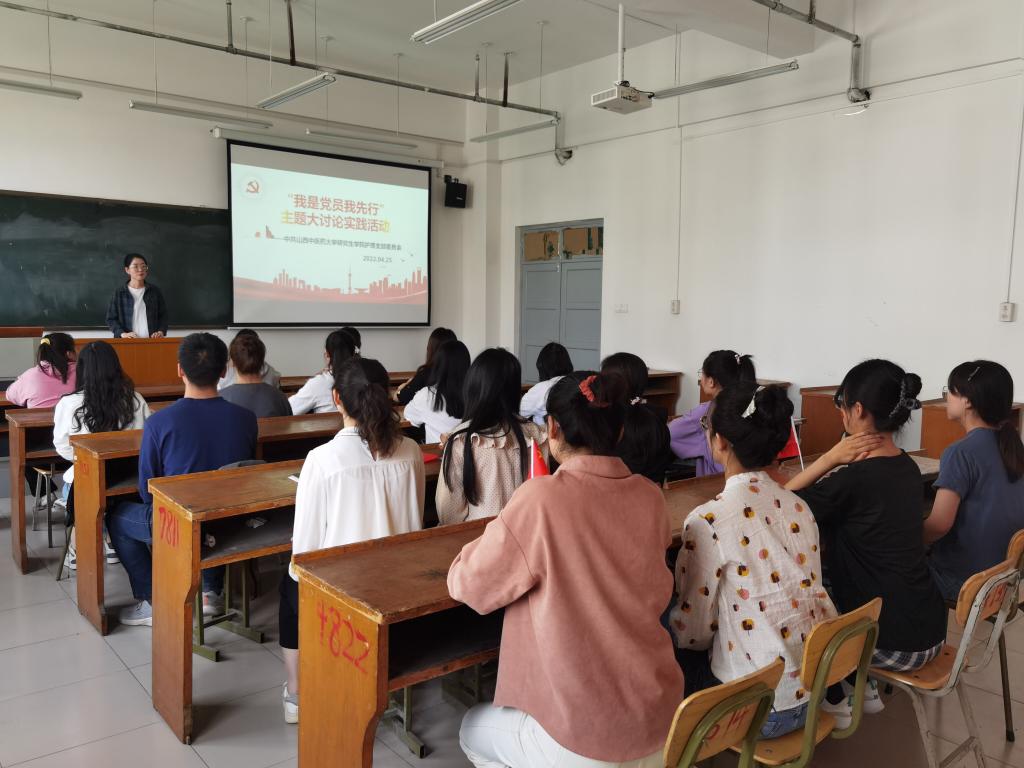 根据校党委《关于在全校共产党员中开展“戴党徽,亮身份,争做抗疫先锋”活动的实施方案》的精神要求及研究生学院党委相关工作安排,同时为进一步推动和发挥疫情防控期间党员同志们在群众中的先锋引领作用,贯彻全心全意为人民服务的宗旨,守住防疫底线,宣传防疫知识,提高对疫情的认识,有效发挥研究生学院各党支部的战斗堡垒作用和党员的模范带头作用,研究生学院各党支部于5月3日前开展了“我是党员我先行”大讨论活动。